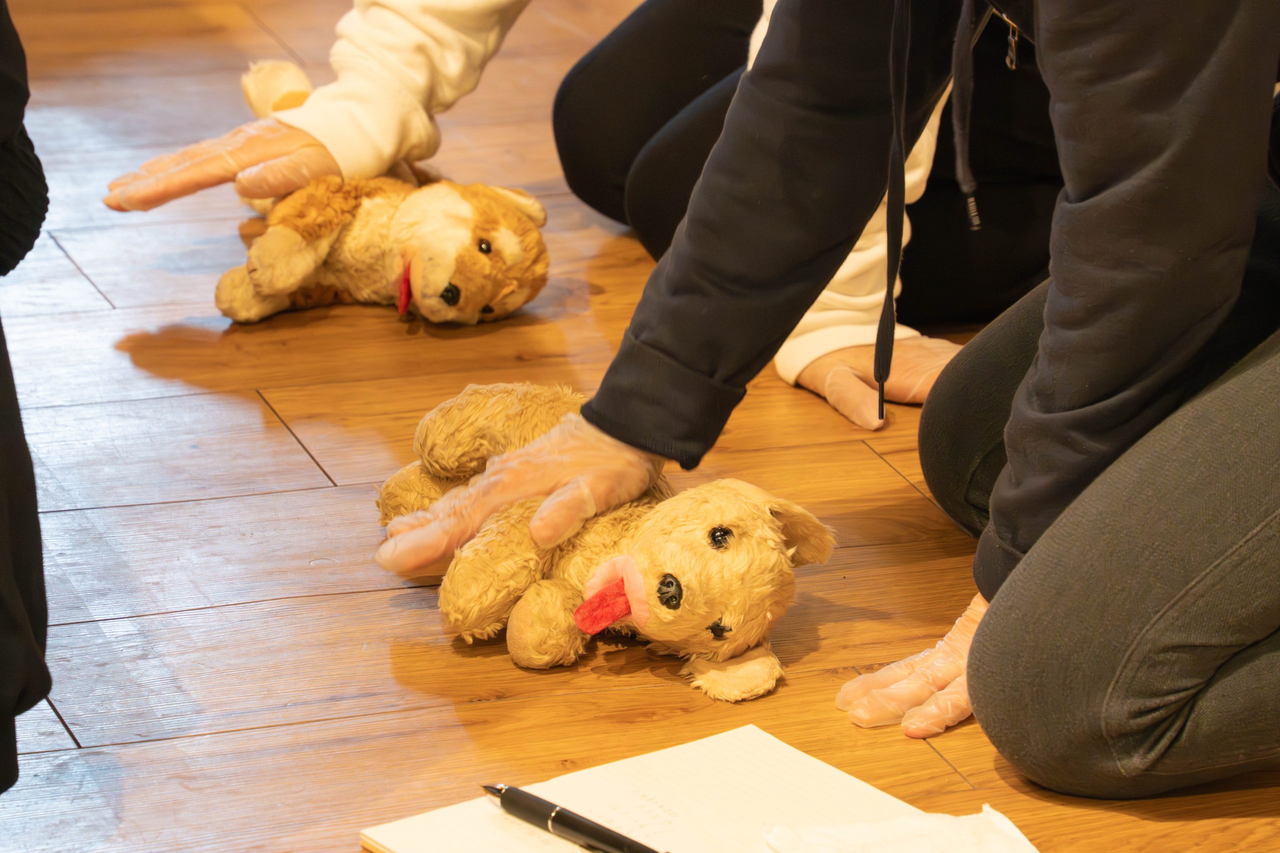 実物大のぬいぐるみを使った実践トレーニングも行いました。